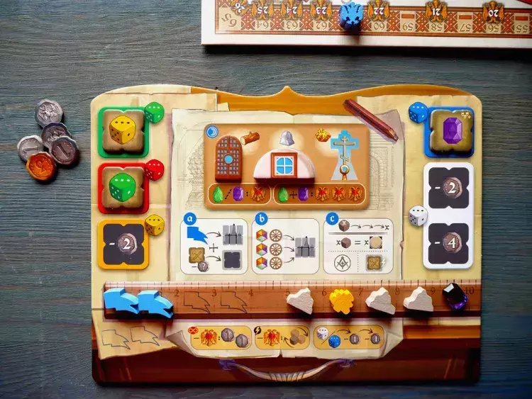 Mecánica: Gestión de dados, set collection, gestión de recursos, rondel
